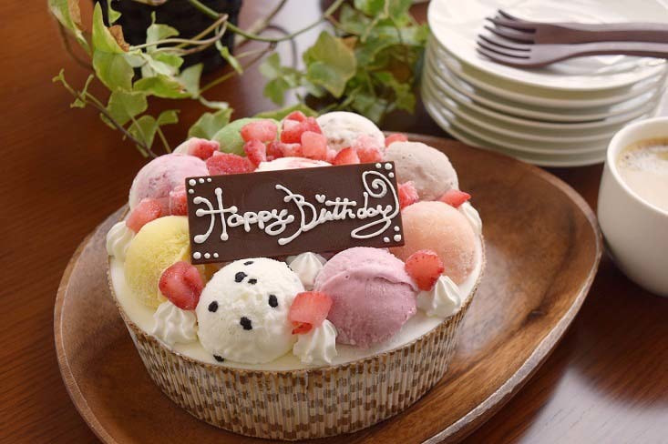 岩瀬牧場自慢のジェラートのいろいろなフレーバーをお楽しみいただけるアイスケーキです。